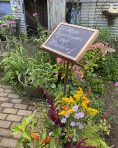 Na koffie of thee met appelgebak op super leuk bont gekleurd servies, was het tijd om de tuin en boomgaard te bewonderen. Natuurlijk ontbraken een gezonde lunch en creatief bezig zijn niet op het programma.